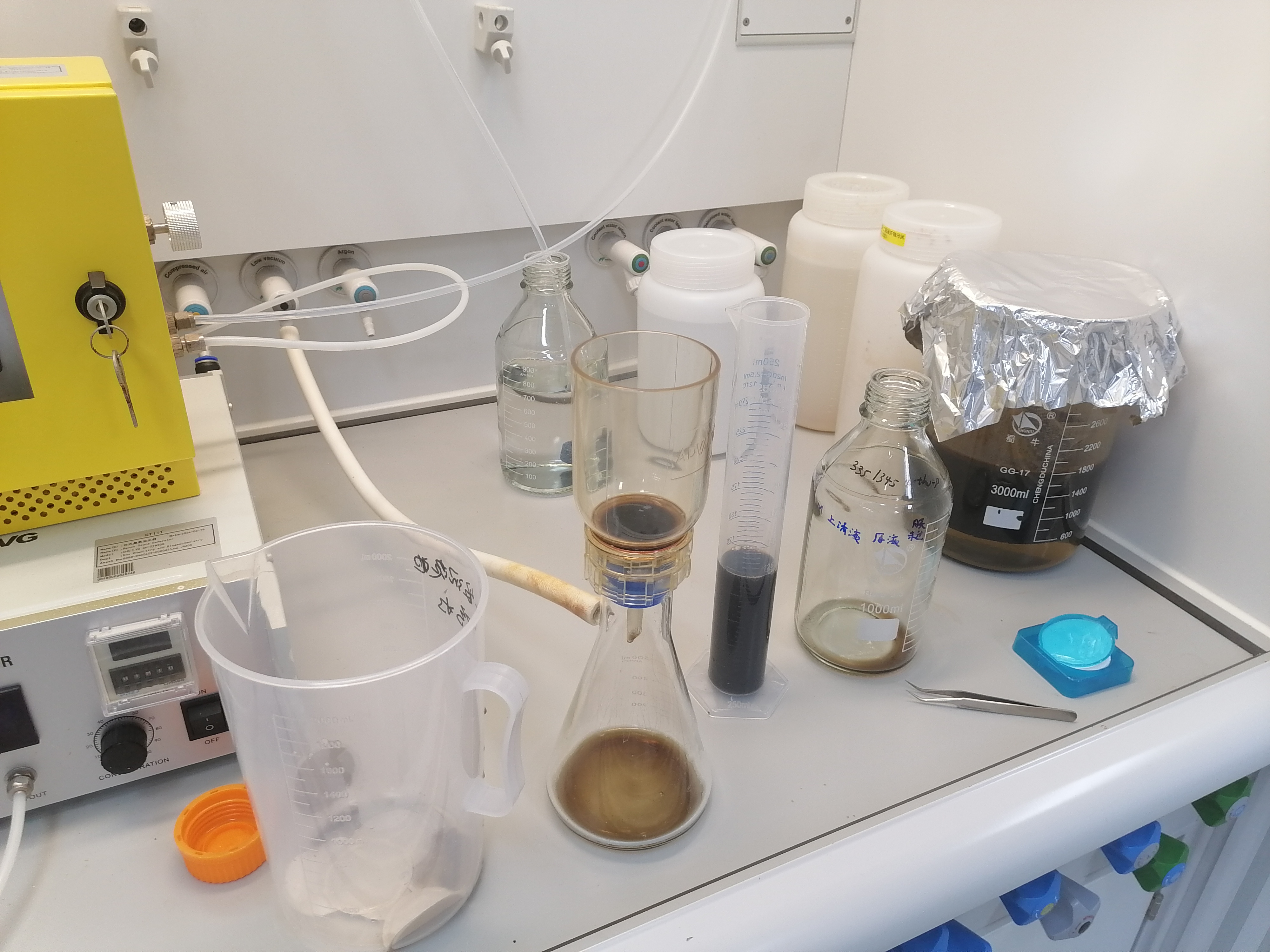 换滤膜,开关真空泵,转移滤液。